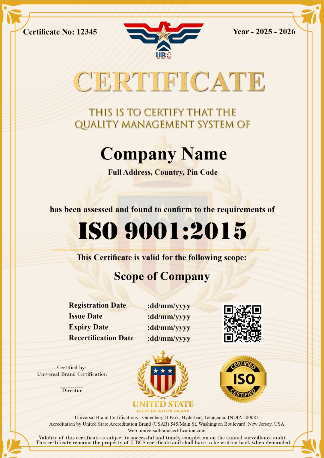 Universal Brand Certification & Services (UBC) is one of the leading certificates provider. We are backed up by a highly professional and qualified team, we have been certifying business enterprises across various sectors of economies for their management systems by assuring that they meet the requirements of International Organization for Standardization (ISO).